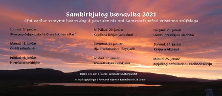 Alþjóðleg samkirkjuleg bænavika hefst á mánudaginn 18. janúar. En á sunnudaginn verður útvarpsguðsþjónusta frá Grensássókn kl. 11 og nethelgistund frá Möðruvallaklausturskirkju þar sem fjallað verður um bænavikuna. Í þessari vikuÞ hafa kristnar kirkjur sameinast í bæn í meir en hundrað ár til að biðja um einingu kirkjunnar og frið. Það er alheimsráð kirkna og kaþólska kirkjan sem undirbúa efnið á einhverjum ákveðnum stað sem er svo sent út um alla heimsbyggðina. Í ár var efnið undirbúið í systrasamfélaginu í Grandchamp í Sviss.