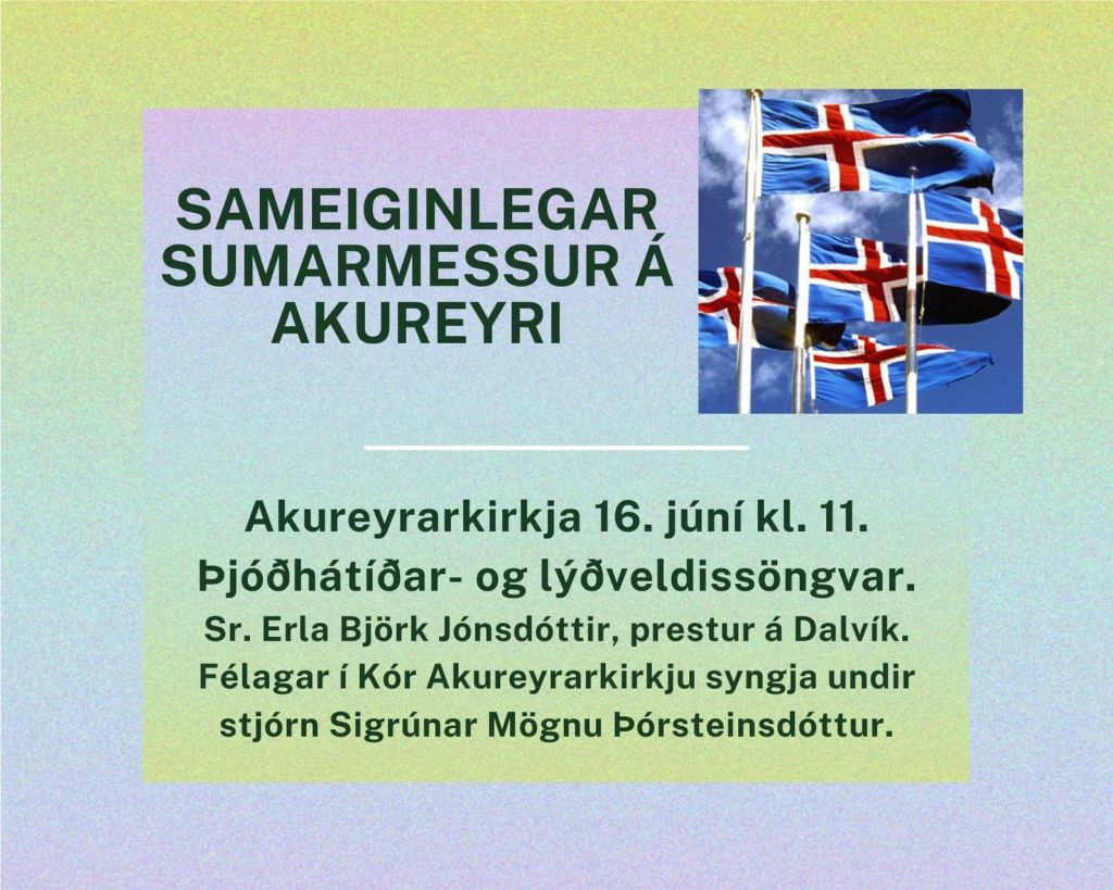Akureyrarkirkja 16. júní kl. 11. Þjóðhátíðar- og lýðveldissöngvar.