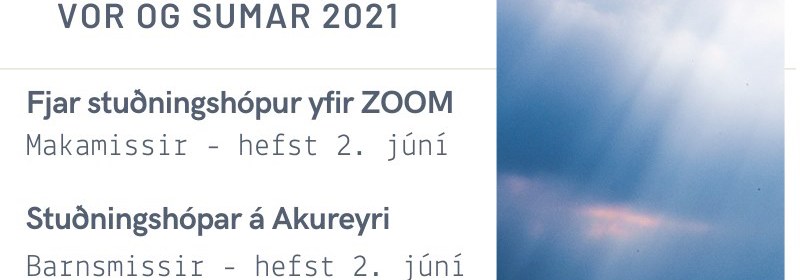 Kynningarfundur í beinu streymi frá Glerárkirkju frá því í maí 2021. Samhyggð kynnir zoom makamissishópinn sem fer af stað í júní, eins barnsmissishópinn sem fer af stað í júní og makamissishópinn sem fer af stað í júlí. Stutt spjall um sorg og sorgarviðbrögð í upphafi fundar.Hægt er að skrá sig í hópana með því að senda tölvupóst á sindrigeir@gmail.com Horfa